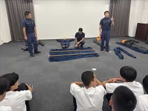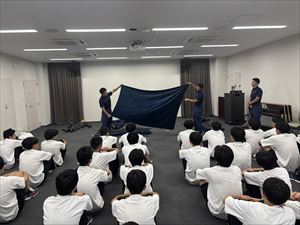 令和7年9月2日の放課後、岸和田市学生消防サポーターの第3回目の講義が行われました。今回のテーマは「防災について」です。