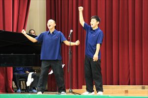 全体合唱終了後は有志生徒によって漫才が行われ、体育館の盛り上がりが最高潮に達しました。