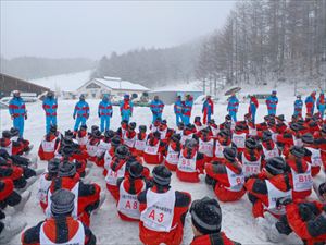 夕食後のスキー事前講習会では,翌日からの実習に向け基本用語を覚えました。