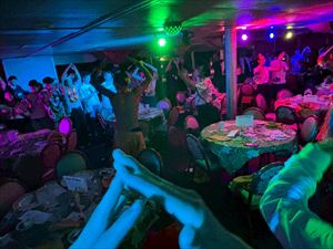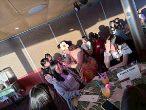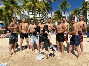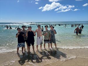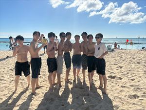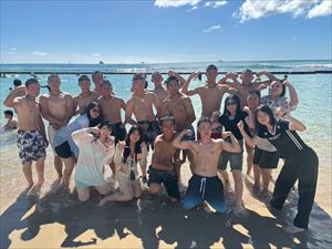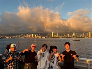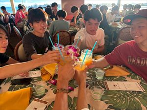 午後からはホテル前のビーチで海に入ったり、砂浜で写真を撮ったりと、最後の自由時間を満喫しました。美しい海と空のもとで過ごした時間は、生徒たちにとって一生の思い出となったことでしょう。夜は「スター・オブ・ホノルル号」でのディナークルーズに参加し、サンセットやフラダンスショーを鑑賞しながら、旅の締めくくりにふさわしいひとときを過ごしました。