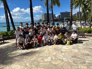 ハワイでの活動もいよいよ最終日を迎えました。朝は「B&Sプログラム」が実施され、現地の大学生の案内のもと、ハワイの街を巡りました。生徒たちは英語での会話を通じて交流を深め、異文化への理解を広げる貴重な時間となりました。昼食はグループごとに現地の学生と共に食事をし、短いながらも心温まる交流を楽しみました。
