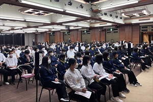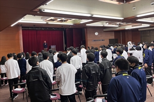 講演が終わった後、学年部長の亀高先生から明日の予定や注意事項が説明されました。