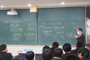 学年部長の先生からは、「将来の夢をかなえることは、自分の人生を幸せにすることであり、今みんなが取り組んでいる勉強などの努力は、未来の自分が幸せになるための足がかりとなる」との言葉があり、日々の学びの意味を改めて考える機会になりました。