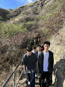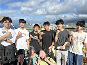 生徒たちは、眼下に広がるホノルルの市街や果てしなくひろがる太平洋を目にあたりにし、疲れが一時的に吹き飛んだようでした。
