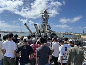 パールハーバーには、日米戦争にまつわる施設が複数あります。1100人を艦内に残したまま今も海中に船体が沈む戦艦アリゾナ記念館。日本やアメリカの軍用機を展示する太平洋航空博物館。1944年8月、沖縄から疎開する学童などを乗せた対馬丸を沈めたアメリカ海軍の潜水艦ボーフィンや日本海軍の人間魚雷「回天」がある太平洋艦隊潜水艦博物館。