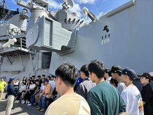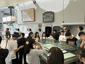 岸壁から階段をつたって甲板に上り、ガイドの方の案内で艦上を見学しました。