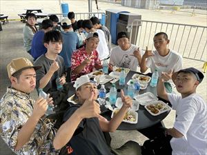 艦をおりた生徒たちは、カレーとポテトサラダのランチをとりました。