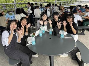 食後のデザートやコーヒーを楽しんだり、展望デッキでくつろいだりする生徒たちの姿も見られました。