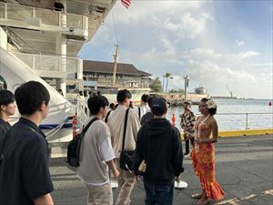 波止場でウェルカムフラダンスでの出迎えを受け、【スター・オブ・ホノルル号】に乗船しです。