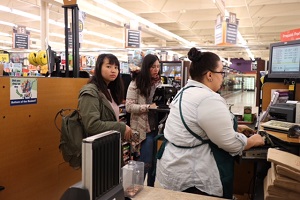 まずはアメリカではお馴染みのFred Mayerというスーパーマーケットで買い物をしました。今の時期は聖パトリックデーの緑色のグッズやイースターのウサギや卵型のチョコレートなどがお店に並んでいます。すでにホストファミリーと訪れ、色々買い物をした生徒もいましたが、日本へのお土産をあれやこれや悩みながら選んでいました。