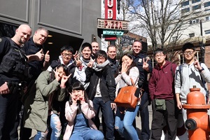 昼前にダウンタウンへ向かい、昼食はガイドのネイトさんおすすめのピザをいただきました。生地の大きさを選び、ソース、具材も好きなものを自分で選ぶスタイルのお店です。今週月曜日は郵便局で切手を買うのも精一杯だった生徒たちも、オリジナルのピザを自分で注文出来るようになっていました。