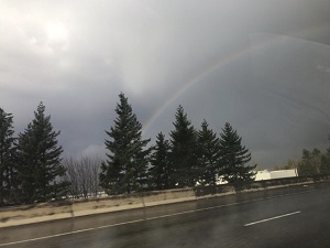 雨が降っていたのですが、雨がやむと大きな虹が見えました。