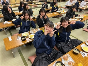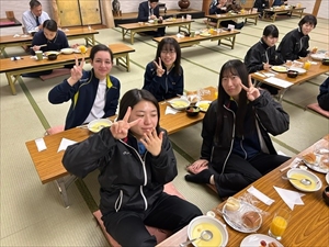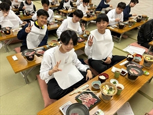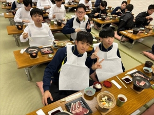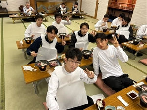勉強で消費したカロリーをしっかり補充し、疲れた身体を癒してくれる豪華料理に皆舌鼓を打ちました。ご飯のおかわりにも行列ができていました。
