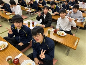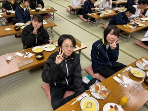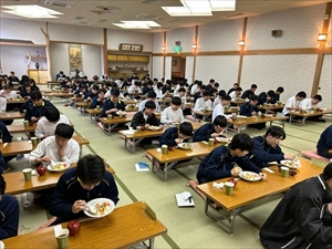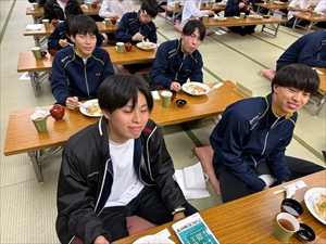 午前の3時間授業を終えると昼食です。生徒たちは眠そうな様子もなく、元気に食事をとりました。
