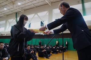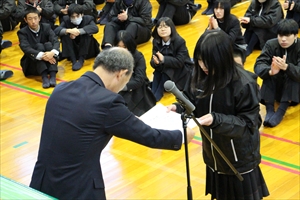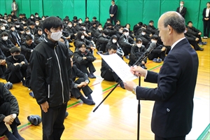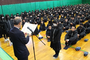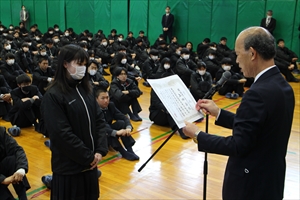式では、書道部員、「税の作文」優秀者、漢検・英検の成績優秀者の表彰も行われ、今年の締めくくりとなりました。