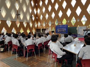 8月28日(水)、1,2年生の希望者43名で近畿大学英語村特別プログラムに参加しました。