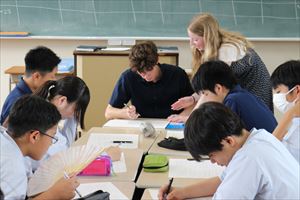 ネイティブの先生による英語の授業では、一緒にゲーム形式での英語レッスンを体験し、本校生徒の英会話力向上に一役買ってくれていました。