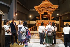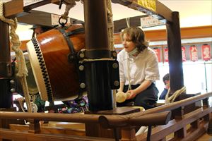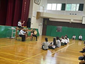 自己紹介終了後は300年以上の歴史と伝統を誇る岸和田だんじり祭りの雰囲気を感じてもらうために、だんじり囃子を実演!